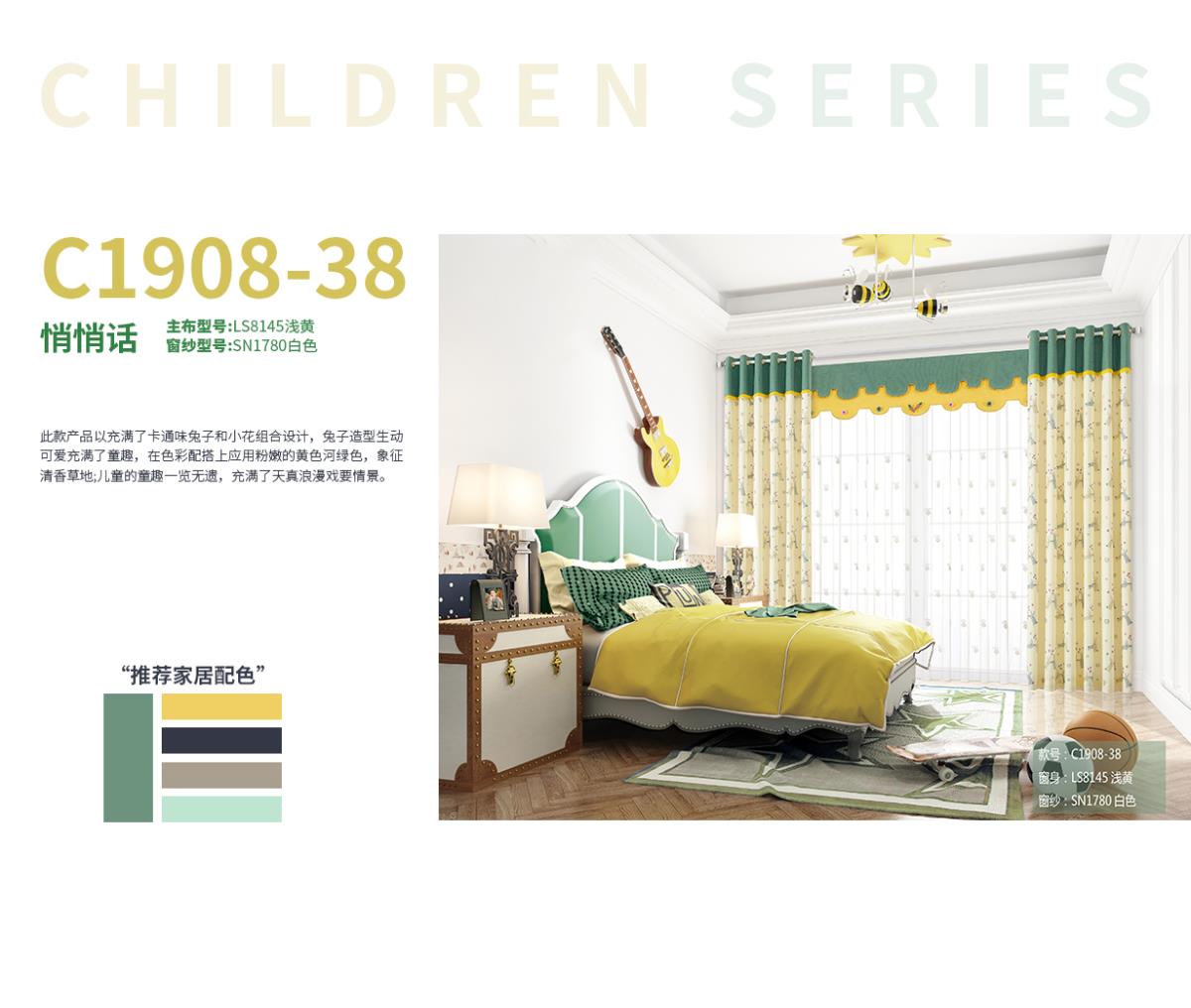 以充满了卡通味兔子和小花组合设计,兔子造型生动可爱充满了童趣,在色彩配搭上应用粉嫩的黄色河绿色,象征清香草地;儿童的童趣一览无遗,充满了天真...